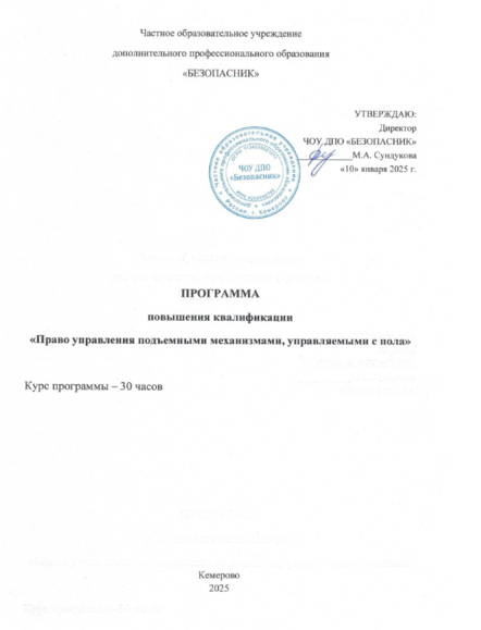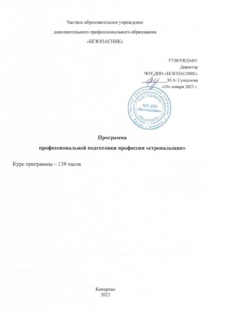 | Частное образовательное учреждение дополнительного профессионального образования «Безопасник» | |